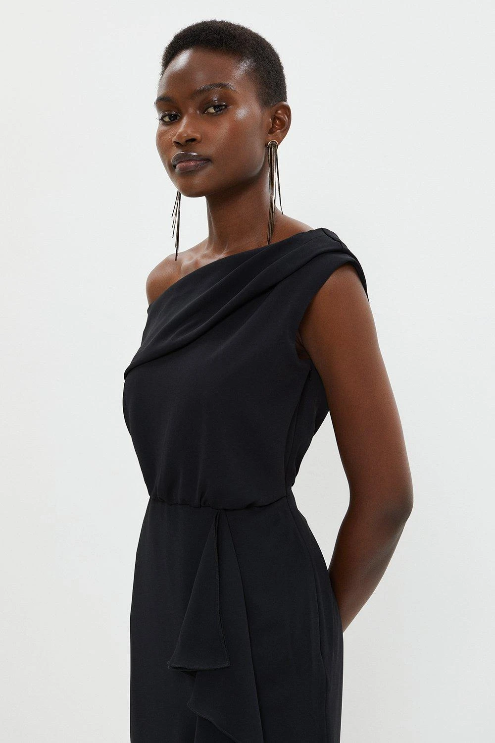 - Neckline: Asymmetric