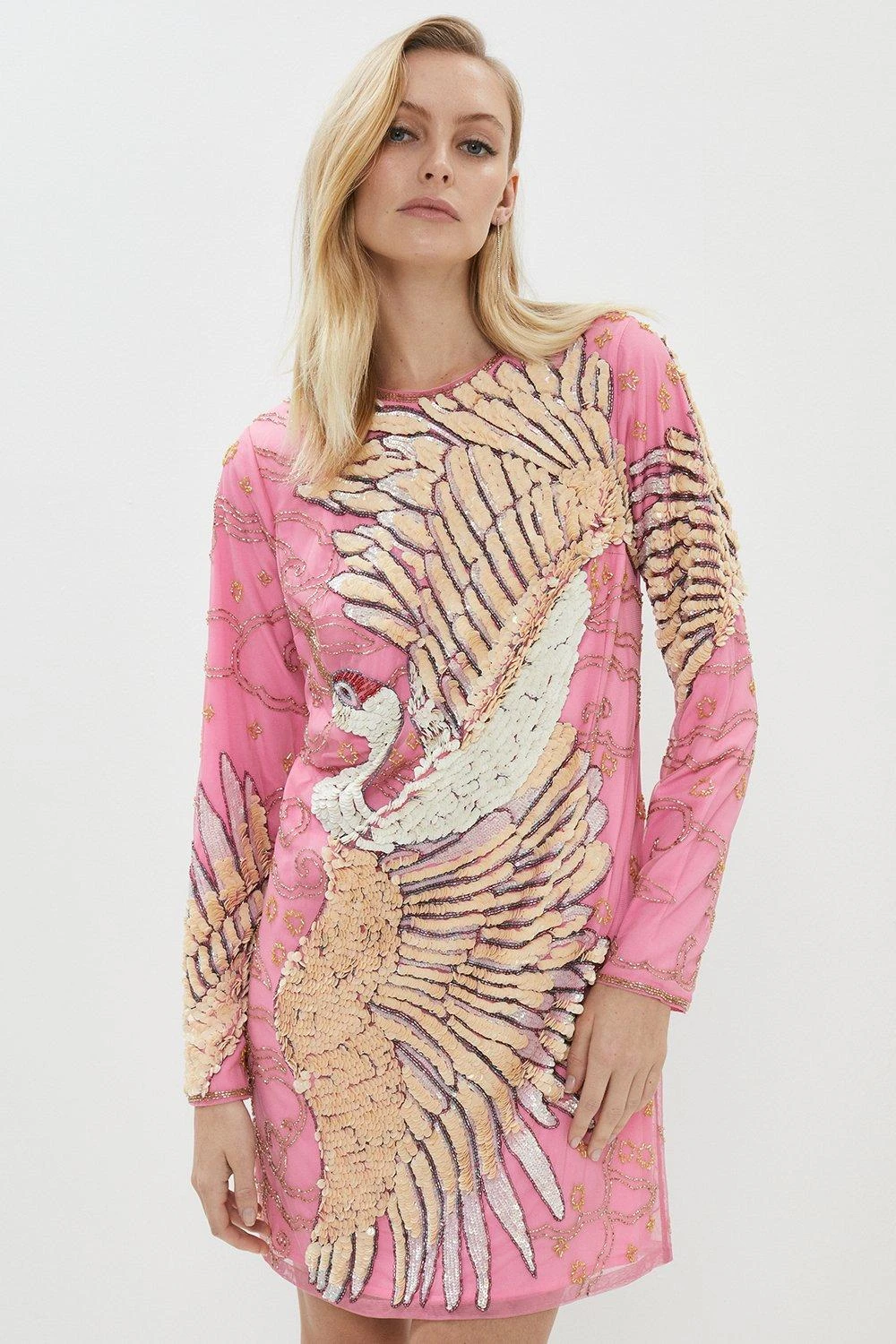 Main: 100% Polyester. Lining: 100% Polyester. Hand Wash Only. Length 95cm.