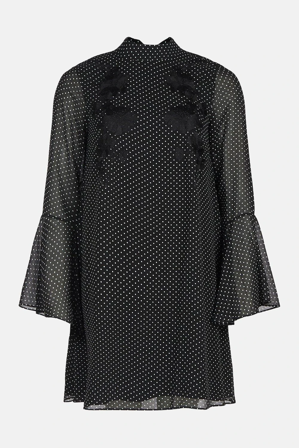 MAIN 100% POLYESTER. LINING 100% POLYESTER. DRY CLEAN ONLY. LENGTH 90CM