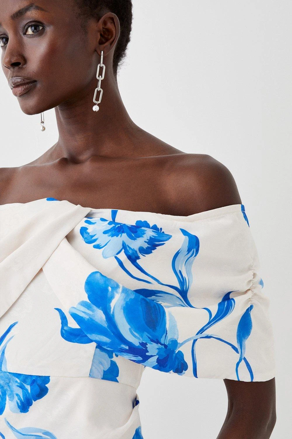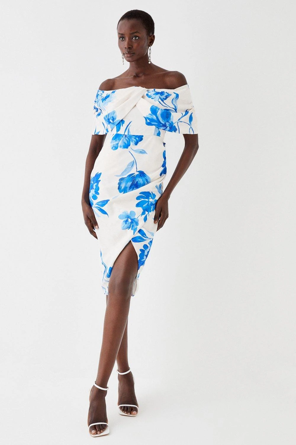 Coast Petite Satin Jacquard Bardot Pencil Dress