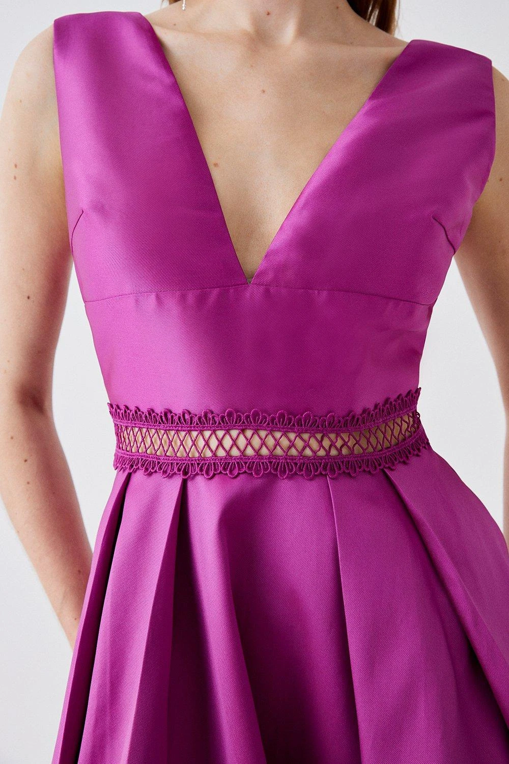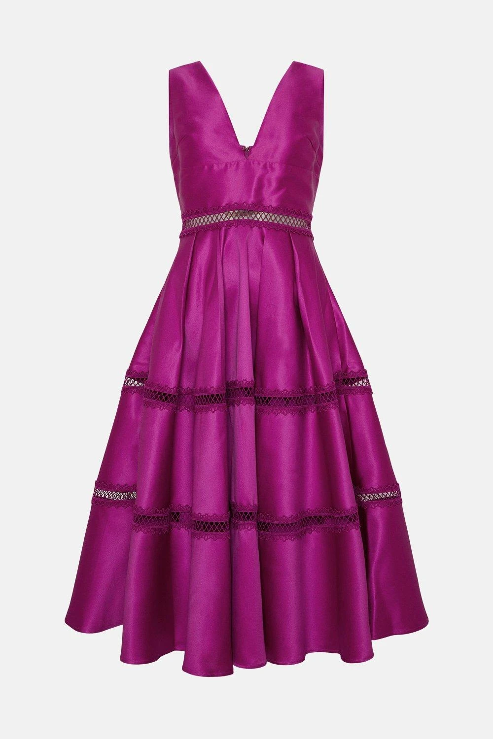 Coast Plunge Neck Twill Midi Dress With Lace Trims
