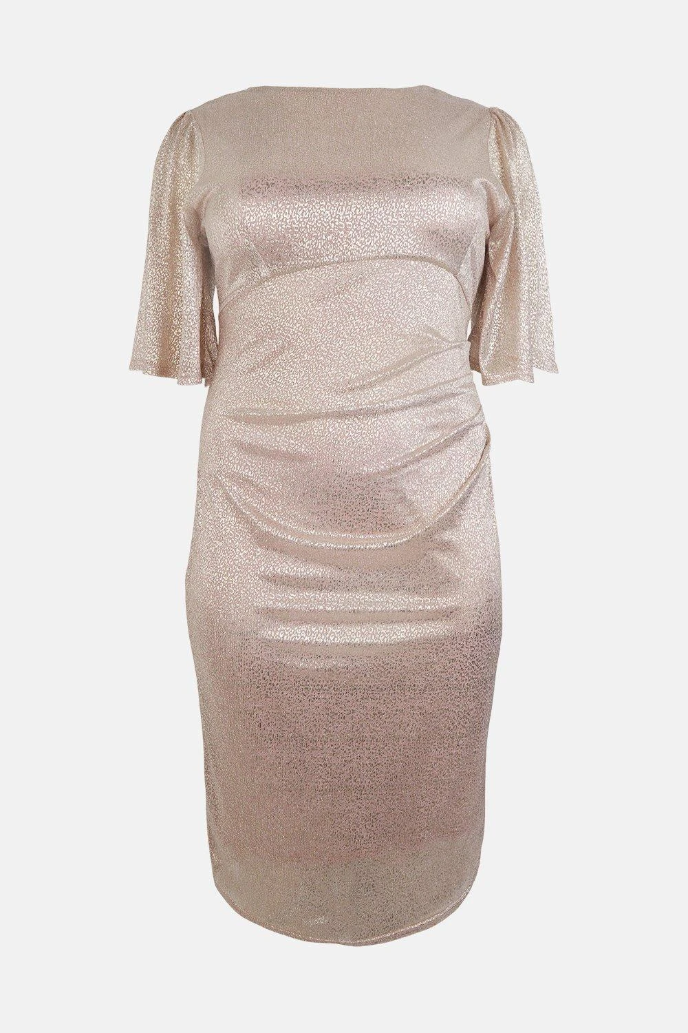 After-dark luxe is effortless with this midi dress. Crafted in a stunning fabric that’ll hug to every contour, the piece offers a flattering shape with its pencil-fit cut, that skims your waist and hips, alongside an angel sleeve detail, that’ll flare elegantly away from the arms. Finish off with simple diamante studs and let your figure shine.