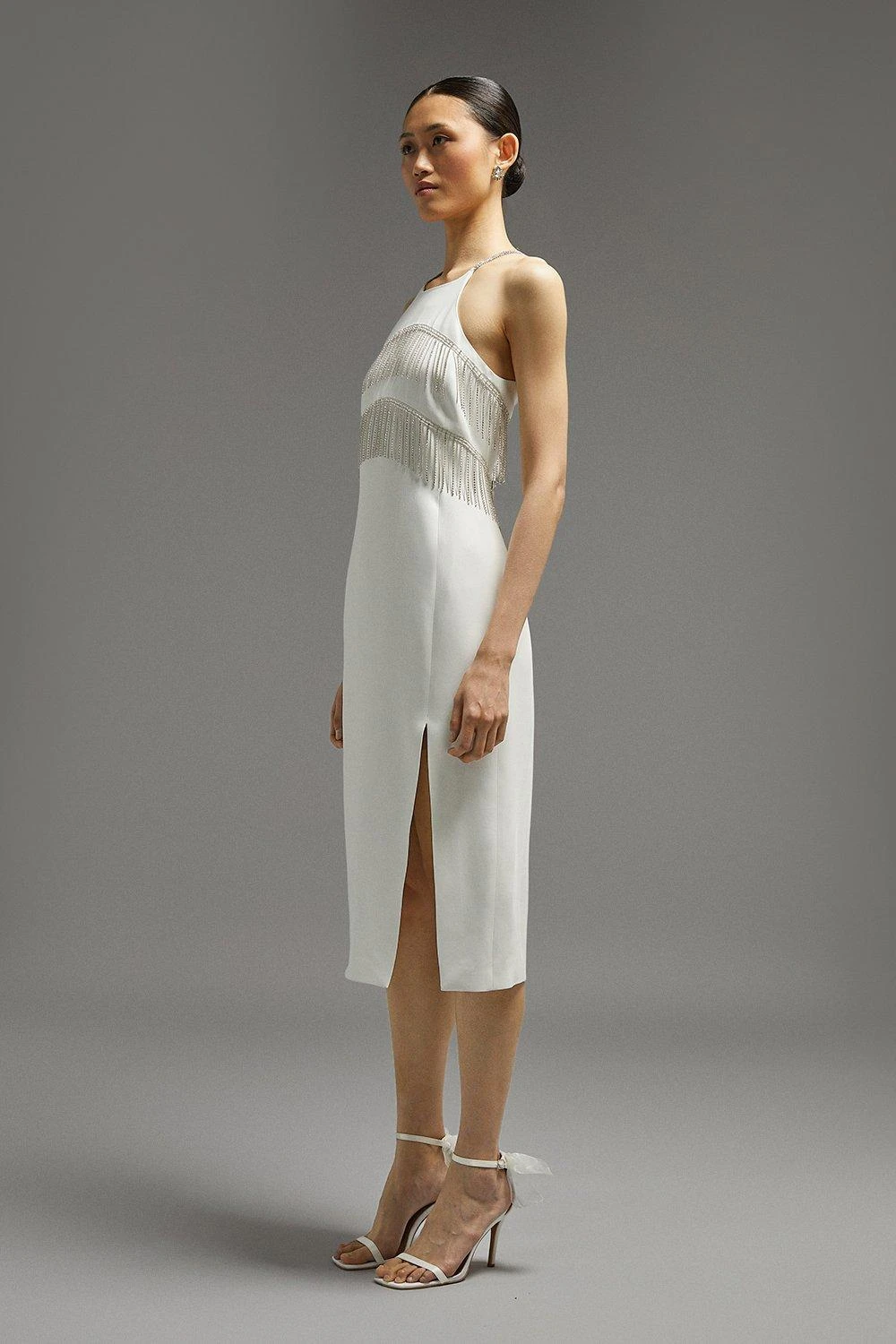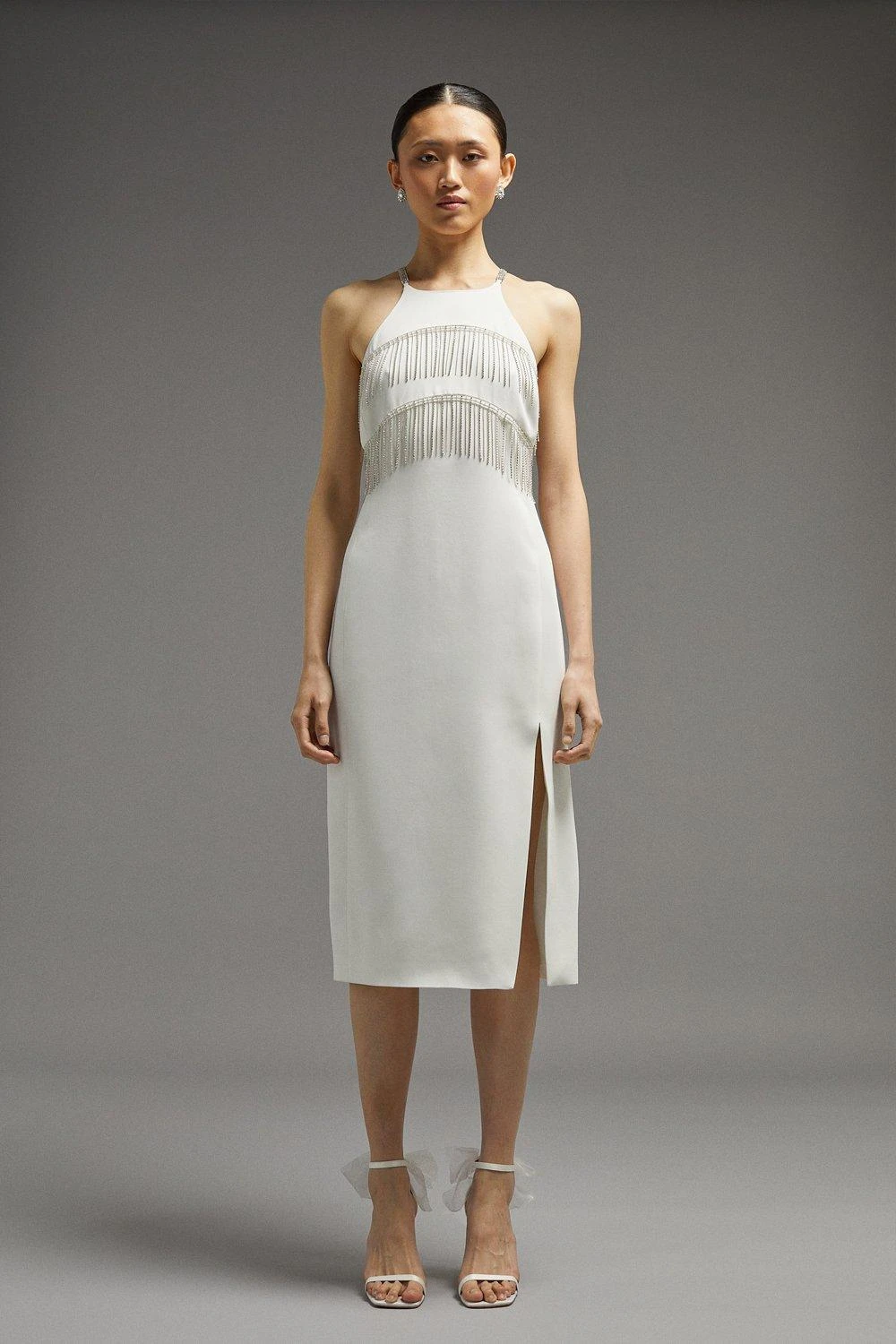 Main: 97% Viscose, 3% Elastane. Lining: 100% Polyester. Excluding Trim. Dry Clean Only. Cover Trims During Cleaning. Length 117cm.